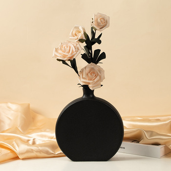 YST Ceramic Factory Simple White Black Decorative Flower Home Decoration Creative Round Ceramic Vase